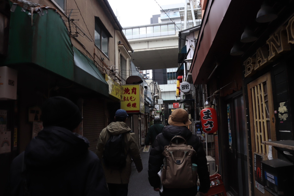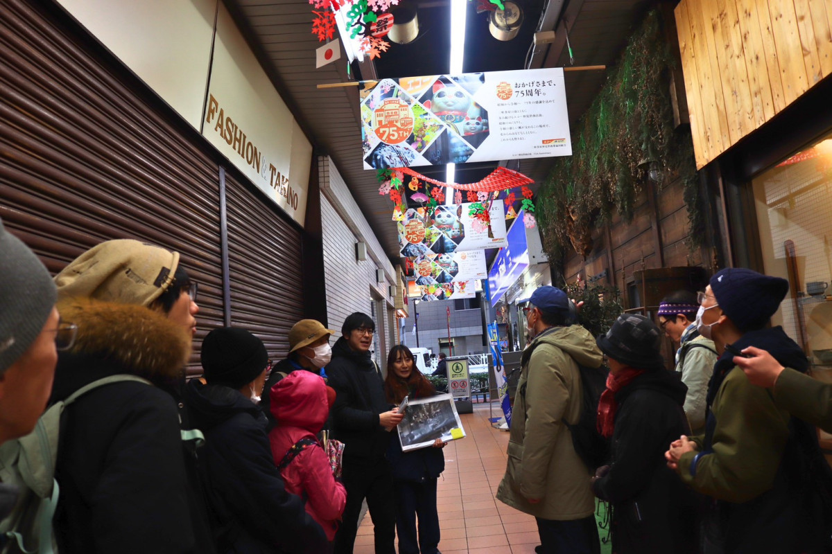 まち歩きは2時間ほどで終了。1977(昭和52)年から世田谷に住む参加者の女性は「2020年代になって急速に三茶の風景が変わっていったので、ちゃんと見ておこうと思って参加した。下の谷商店街のにぎわいを見ていたから、当時を思い出してキュンキュンした」と笑顔で話していた。「本屋も減ってきて文化が消えてきている。三軒茶屋シネマは復活してほしいし、三角地帯は残り続けてほしい」という願いもあるという。
