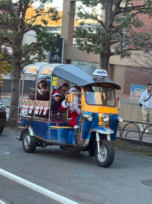 三軒茶屋駅前では、サンタ姿の運転手によるトゥクトゥクの無料乗車体験や、昭和女子大学生によるウオークラリーも行う。