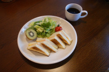 メニューは、ドリップコーヒー(500円)、クリームソーダ(650円)、「サッポロ黒ラベルの生ビール」(700円)、酎ハイ各種(500円)、カクテル(550円~)、「ピポプリン」(680円)、「サラミのチーズサンド」(550円)など。モーニングセットの提供は17時までで、「バタートーストハムエッグ」(750円)、「卵サンド」(800円)、「サバみそ海苔(のり)サンド」(850円)などを用意する。