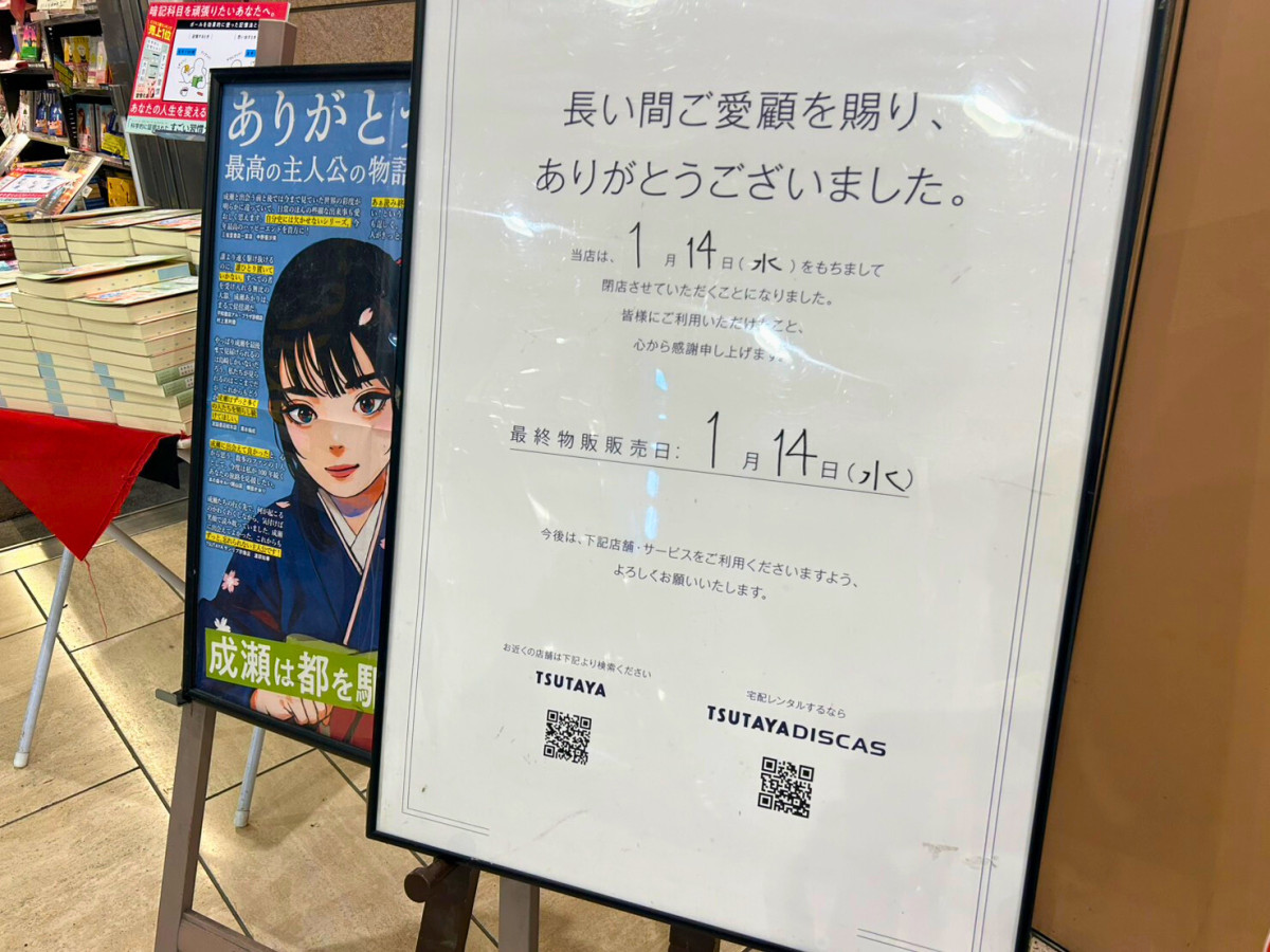 「TSUTAYA三軒茶屋店」(世田谷区太子堂4)が1月14日、賃貸借契約終了で閉店する。
